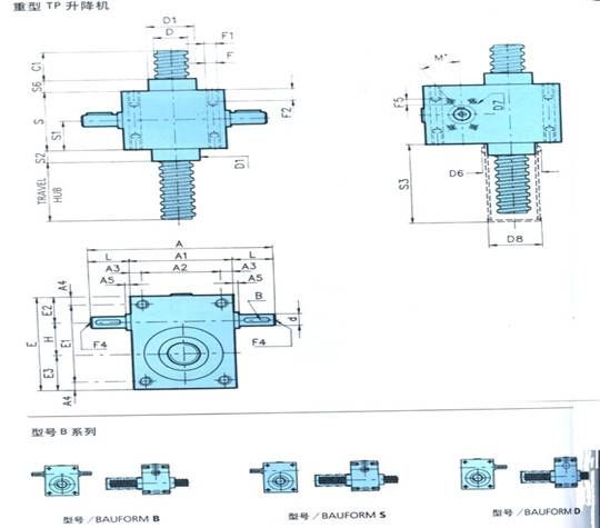 螺桿升降機:TP軸向運動螺桿。驅動軸旋轉帶動蝸輪并產生螺桿的軸向直線運動。螺桿必須有抗旋轉功能;TPR配備旋轉歸納法桿與支撐螺母,驅動軸旋轉帶動蝸輪旋轉。蝸輪與螺桿連接,因而也帶動螺桿旋轉。支撐螺每間把螺桿的旋轉運動轉變成直線運動。支撐螺母必須具有抗旋轉功能。為滿足用戶的廣泛需要,本公司可提供各種螺桿頭,也可按用戶要求定做,TP也可按用戶要求定作千斤頂以滿足用戶特殊機器的特殊要求,產品各大系列均采用雙導軌,確保升機能在最惡劣的條件下發(fā)揮最佳工作效能。特殊的密封技術使蝸桿,螺桿升降機蝸輪體系能長期在良好的潤滑狀態(tài)下運轉。